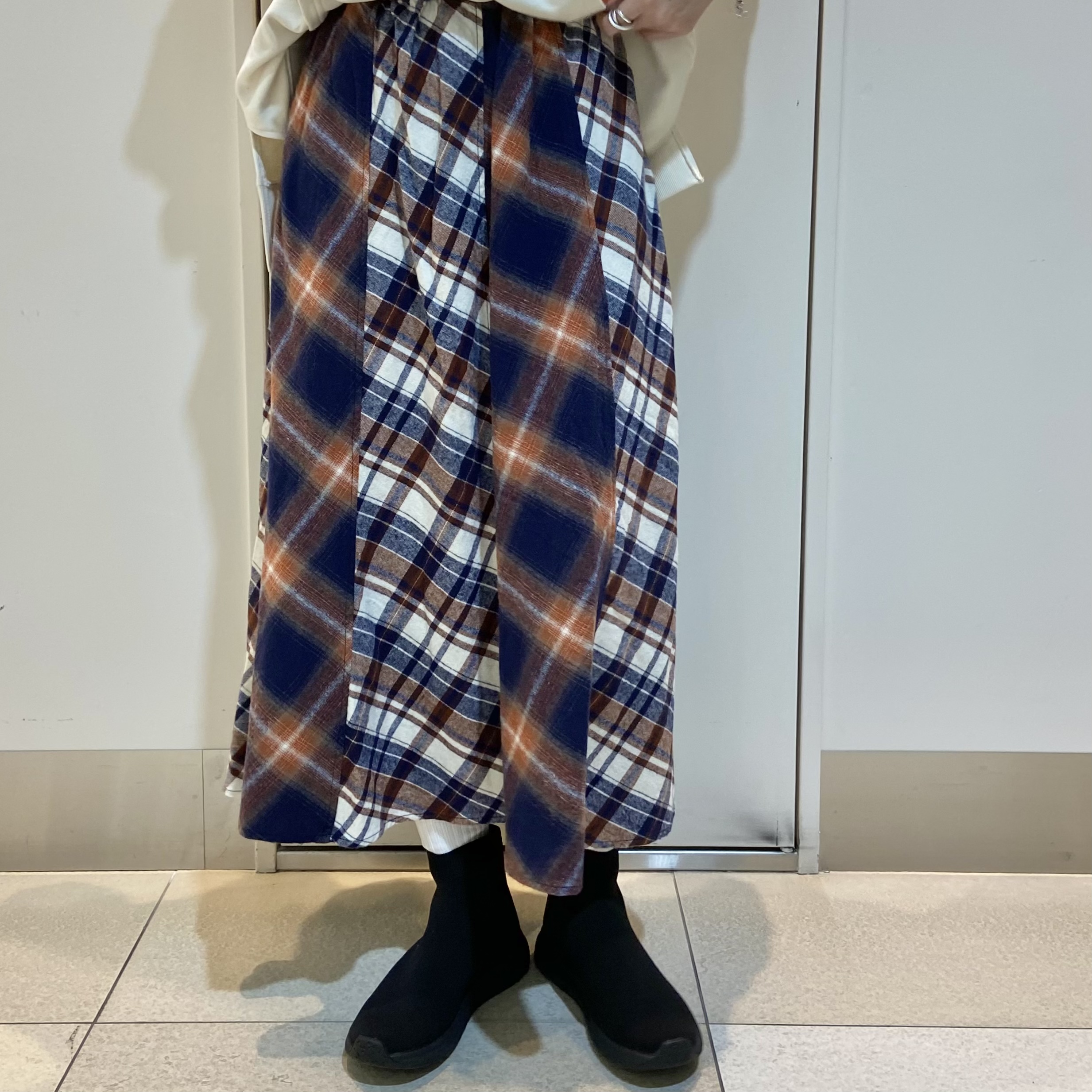 ◼️先染ネルチェック起毛ギャザーマーメイドSK