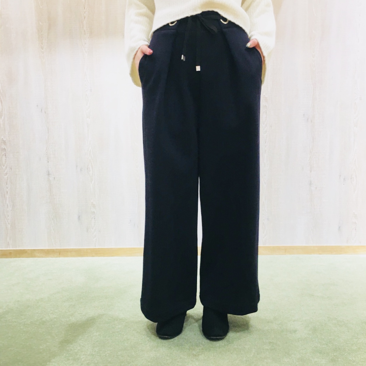 合わせたワイドパンツは