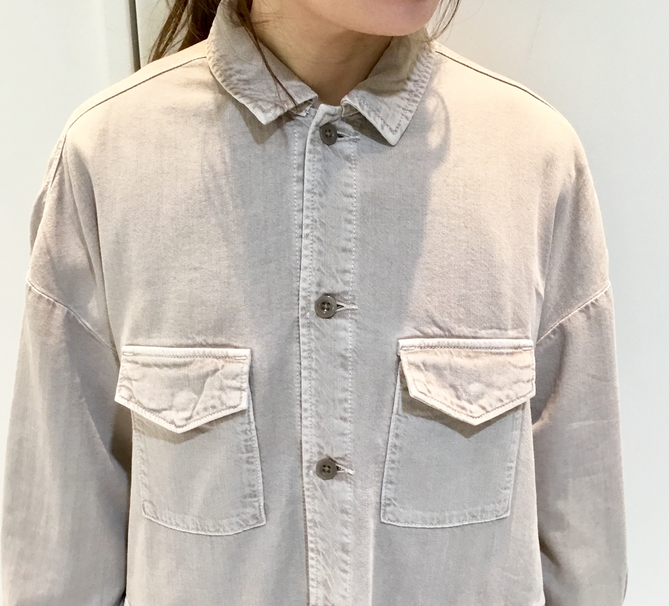 前ボタンを閉めてトップスとしても着られるので着こなしの幅が広がります。