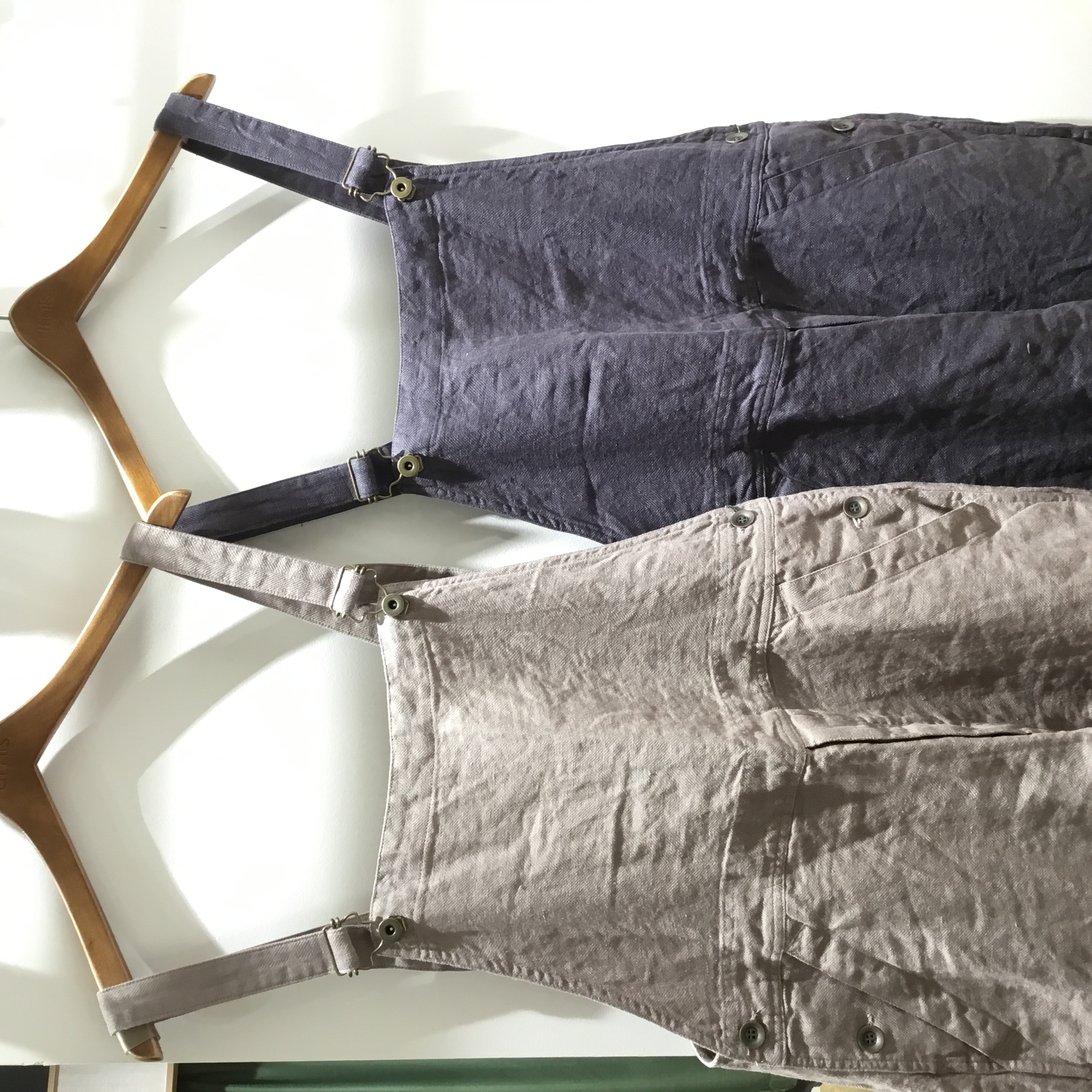 麻100%のヘリンボーン生地を使用し、着るほどに味わいが増す長く愛用したいオーバーオール。