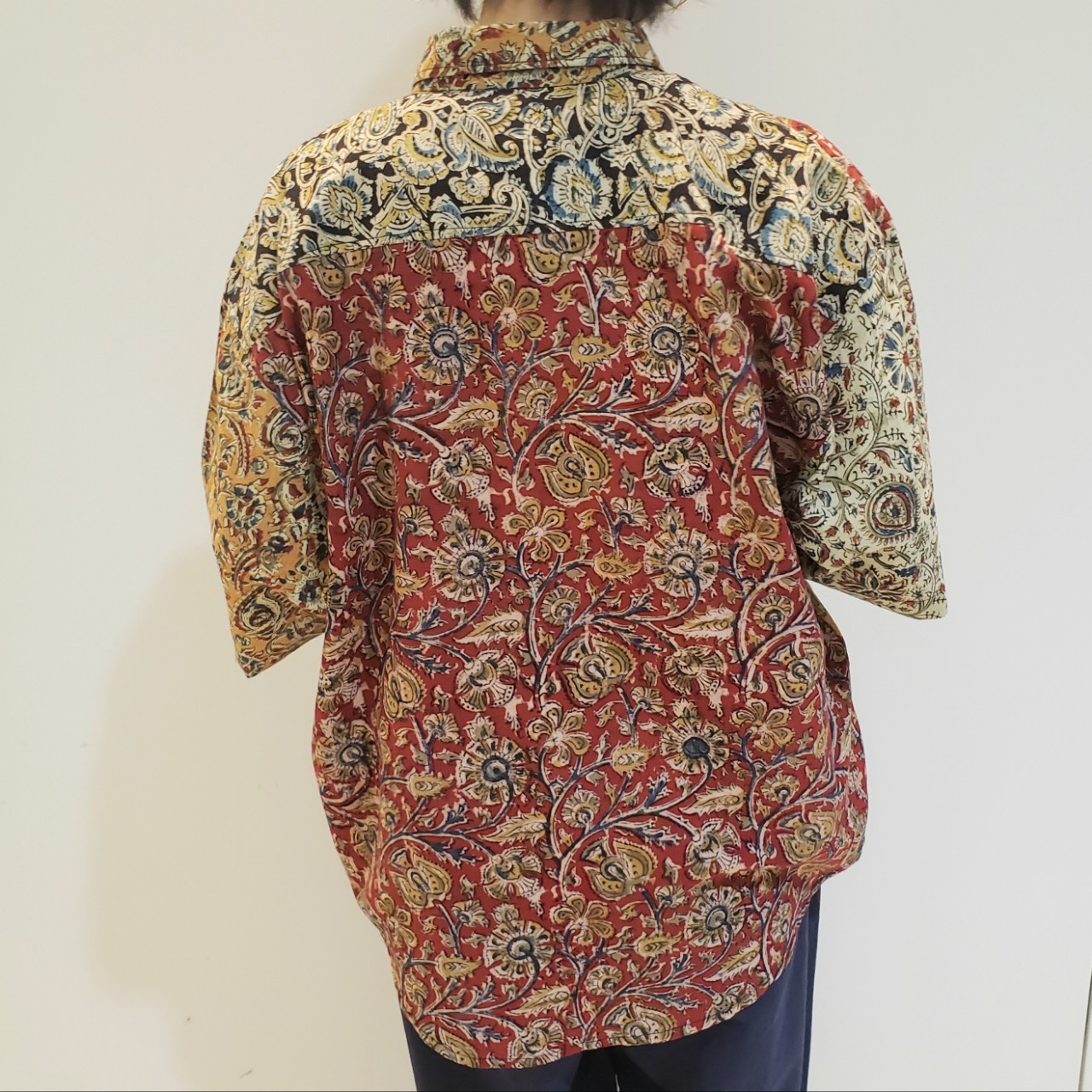 パッチワークのような配色が個性的なペイズリー柄のシャツ。