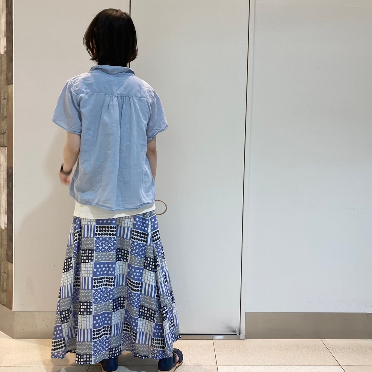 シャツもスカートもコットン100%の素材で合わせ真夏も過ごしやすいコーデです!