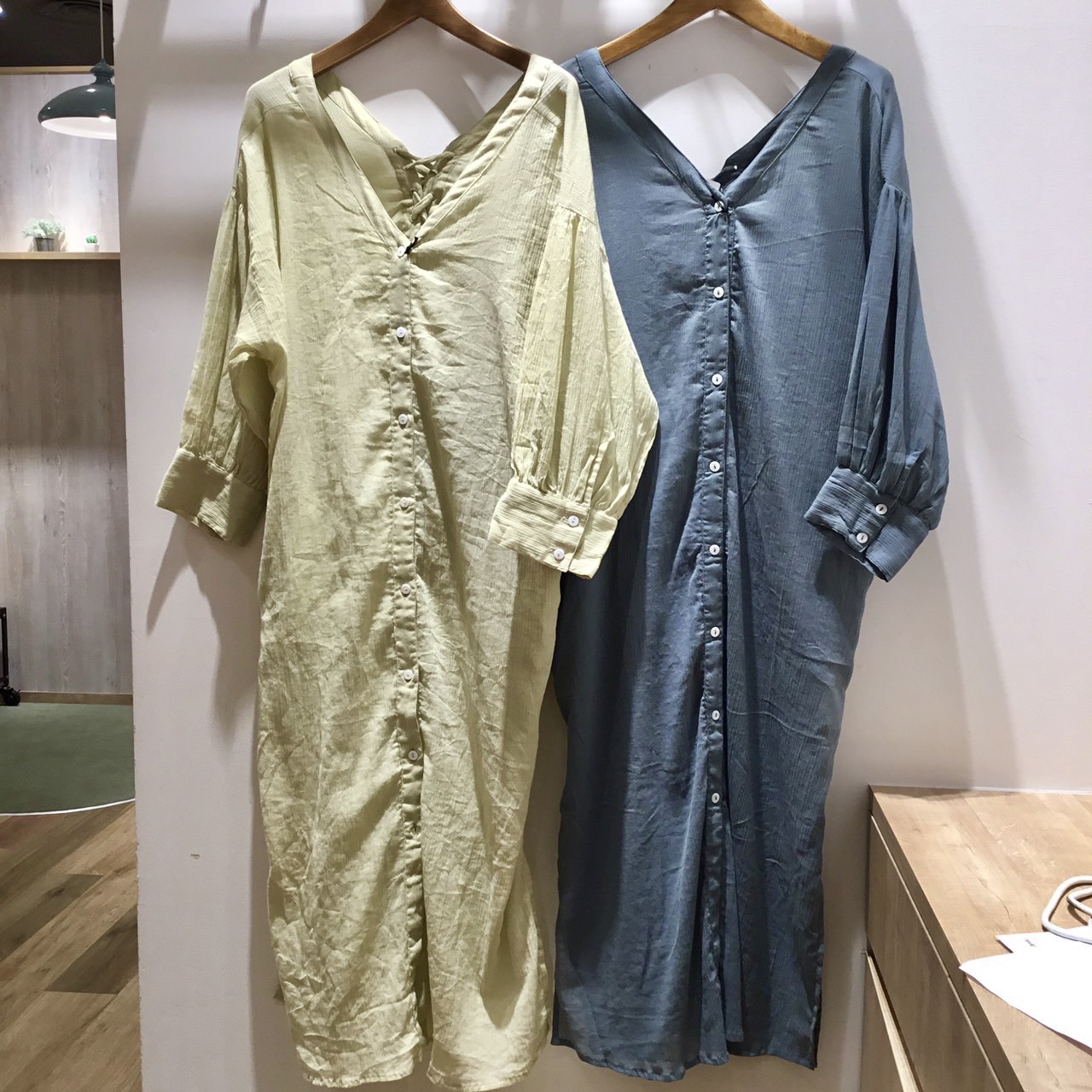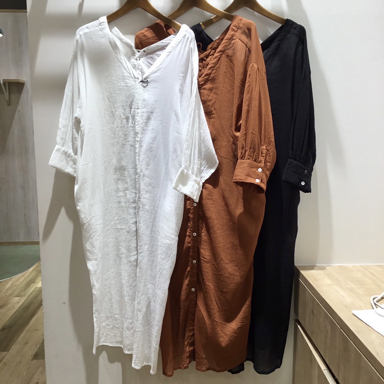 前を開いて羽織りにしたり、ボタンを閉めてワンピースにしたり…