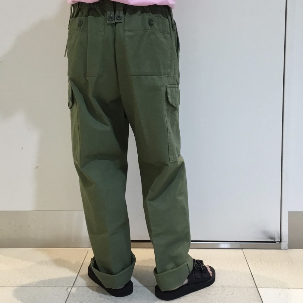 イギリス軍のミリタリーパンツをデザインソースにしたボタンループカーゴパンツ。