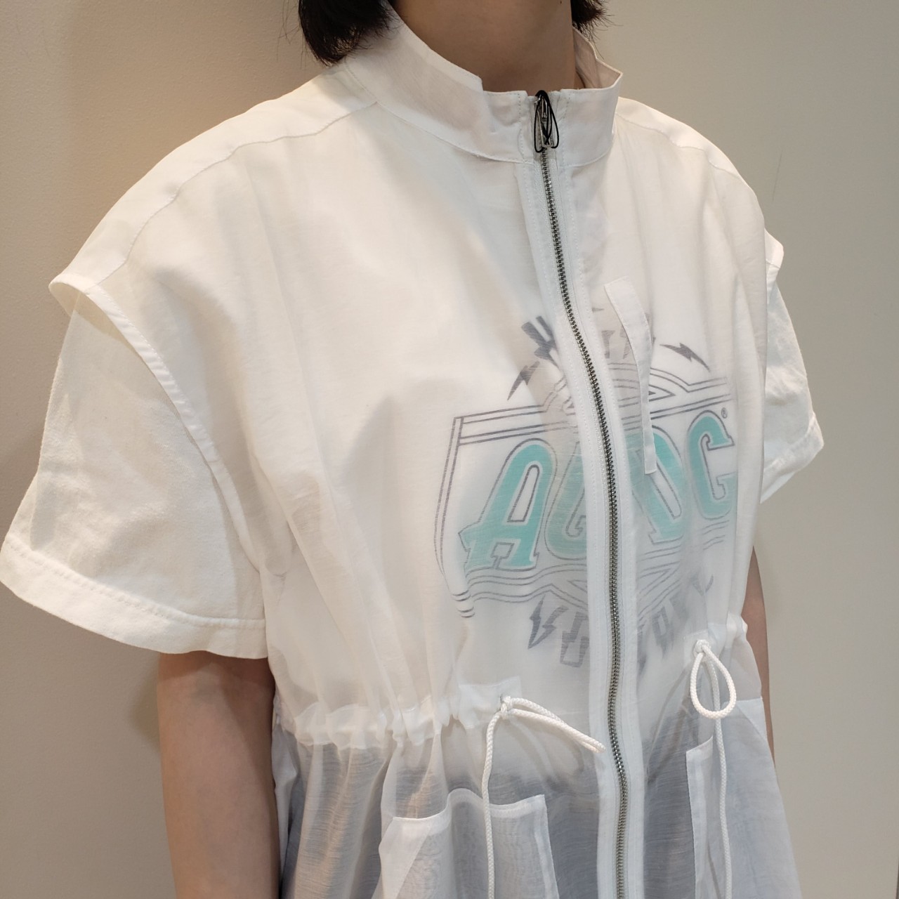袖口は方にかかるくらいの長さなので、Tシャツに限らず、ノースリーブのアイテムやワンピースなどと合わせても○