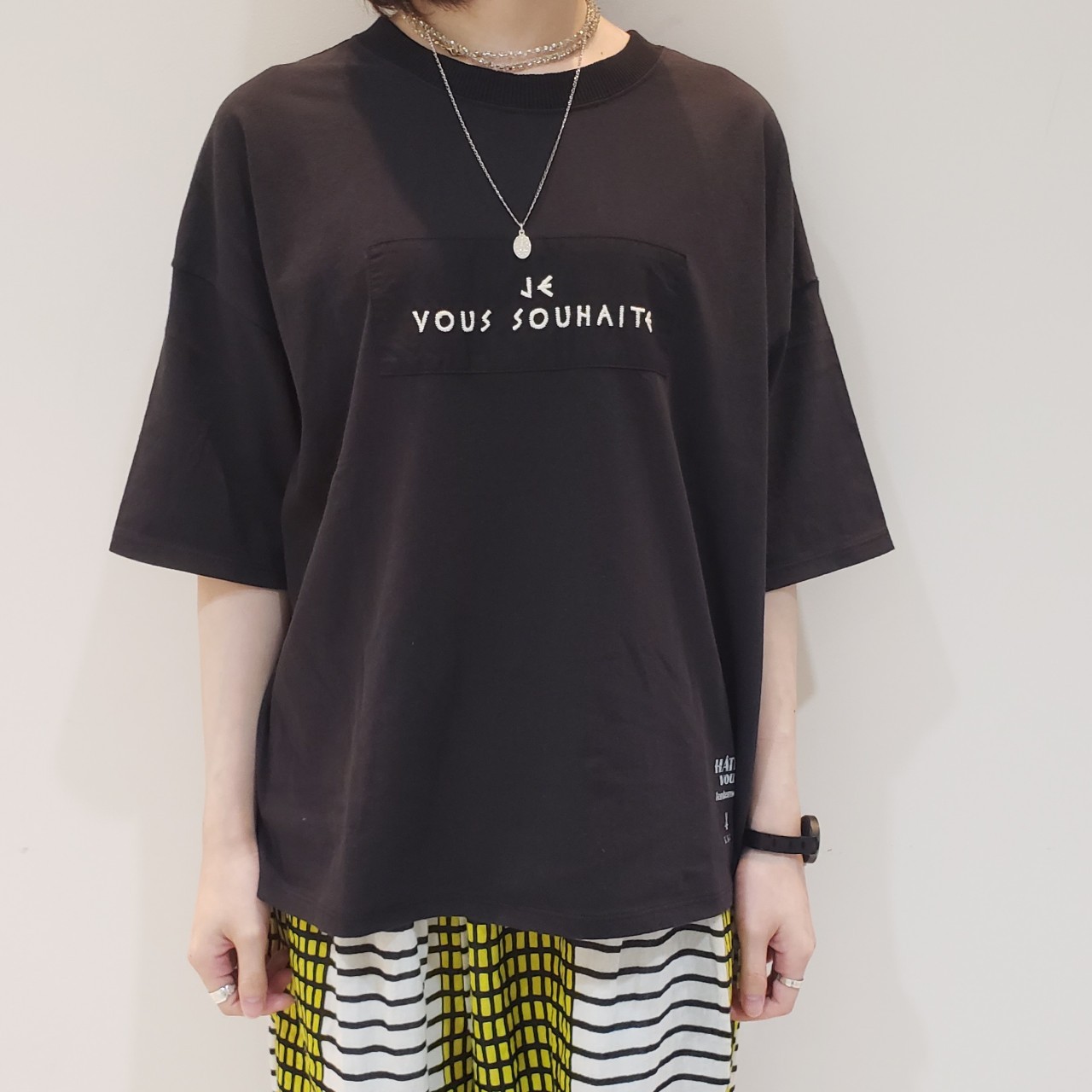 首周りがリブになっている、ゆったりサイズ感のTシャツ。