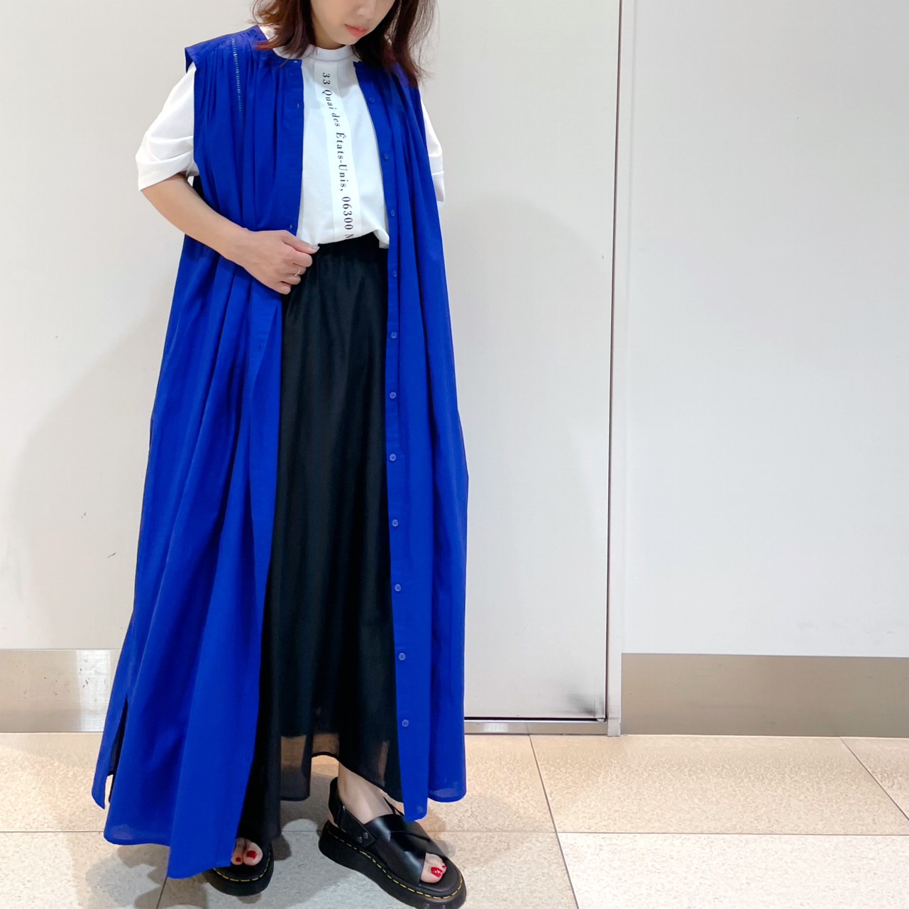 動くとサラサラと揺れる柔らかな雰囲気の一枚なので、黒でも涼しげな印象になりますよ〜!