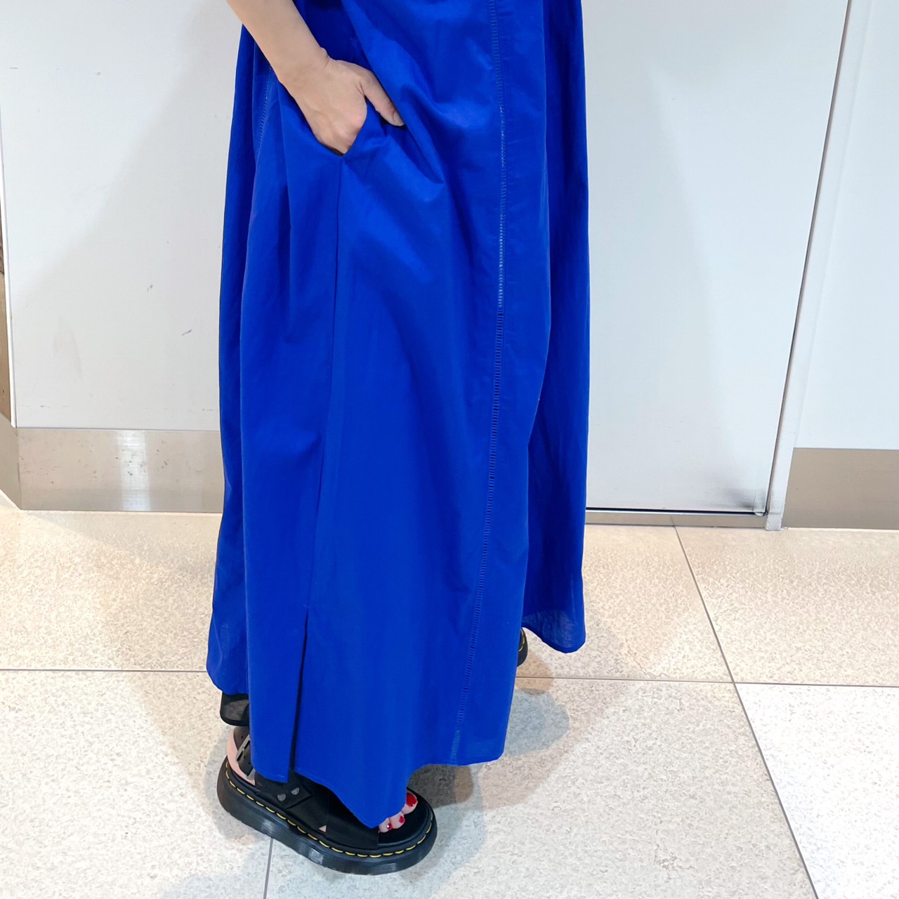 裾はスリット入りなのでマキシ丈でも足さばきがラクラク◎