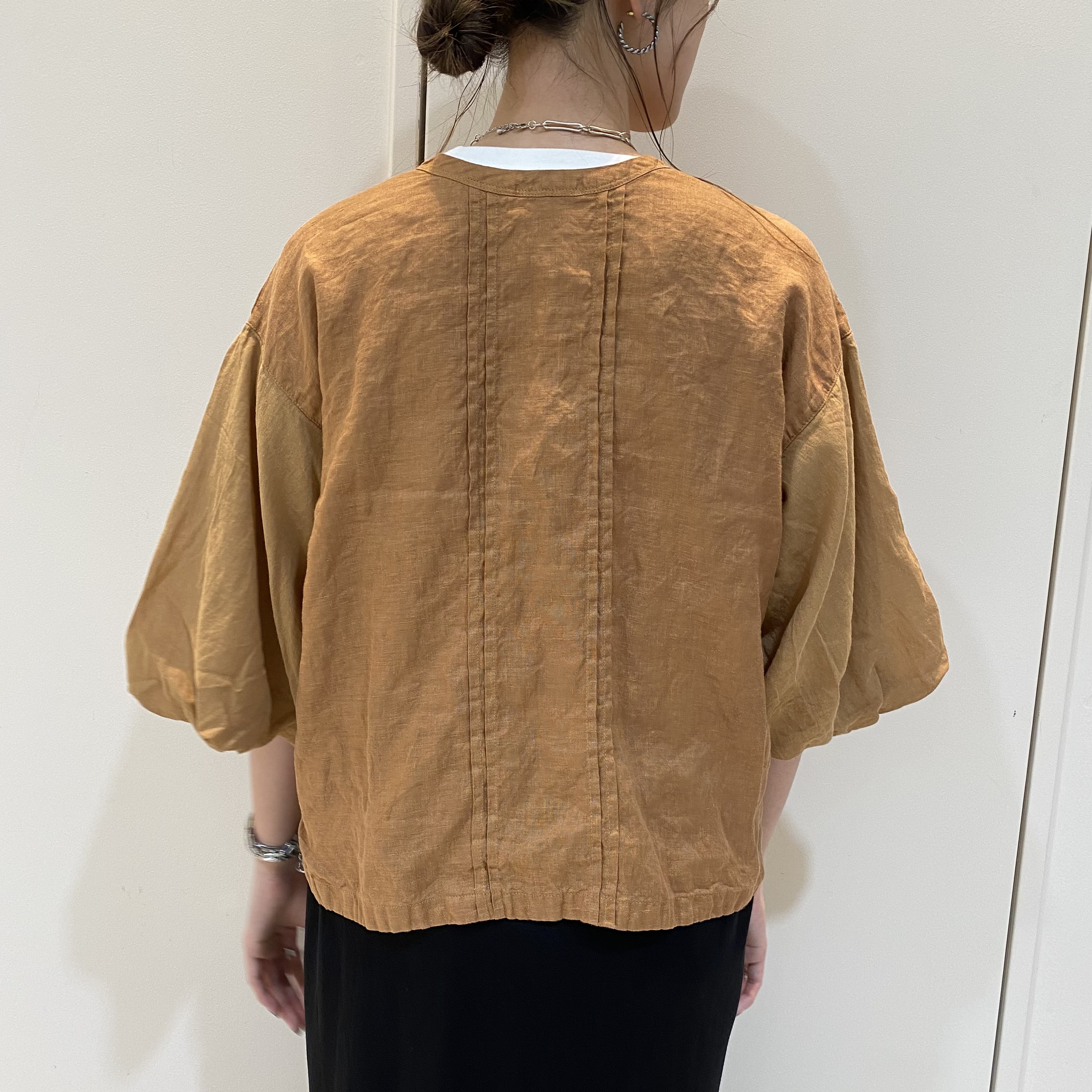 お袖にたっぷりボリュームを持たせた、コットンガーゼとの異素材切替デザインです。
