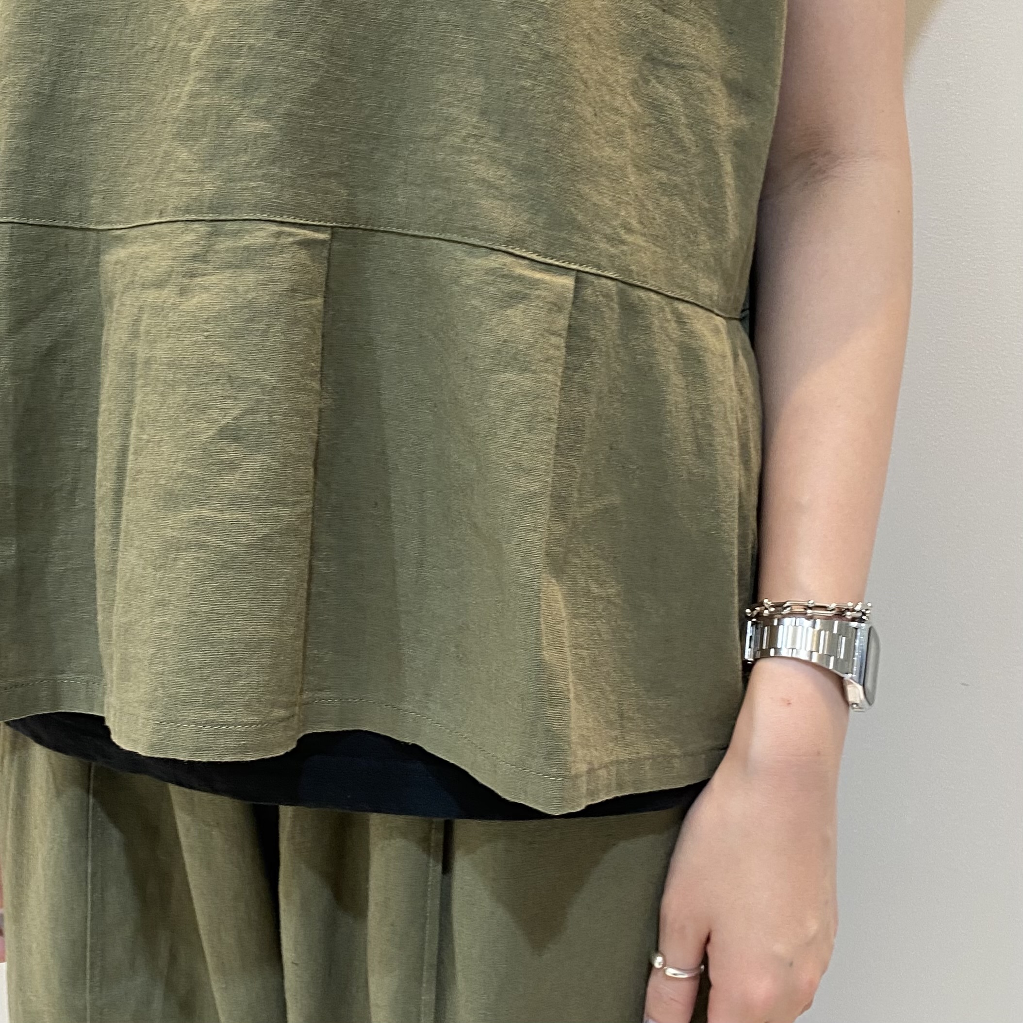 綿麻のナチュラル素材が心地いい、セットアップコーデです。