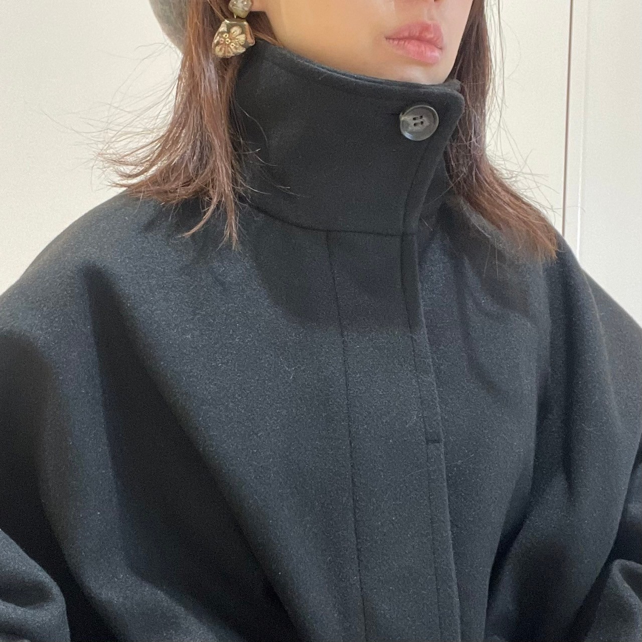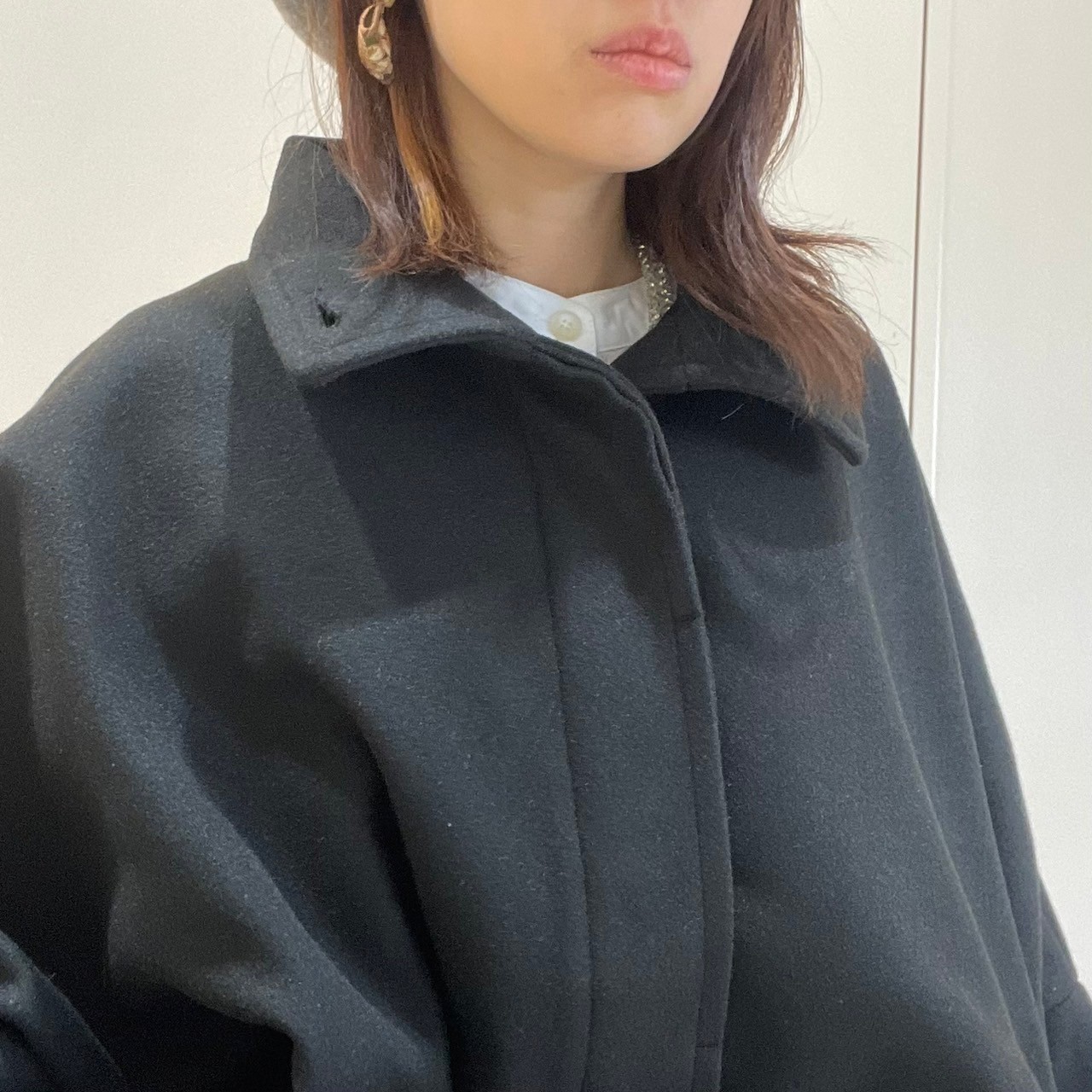 寝かせてマフラーやハイネックを見せるスタイルもおすすめです♩