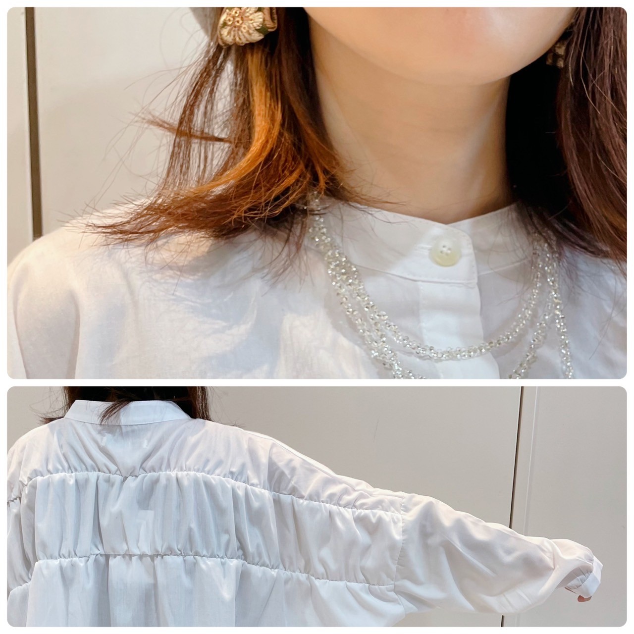 ▷後ろギャザー2本シャツ
