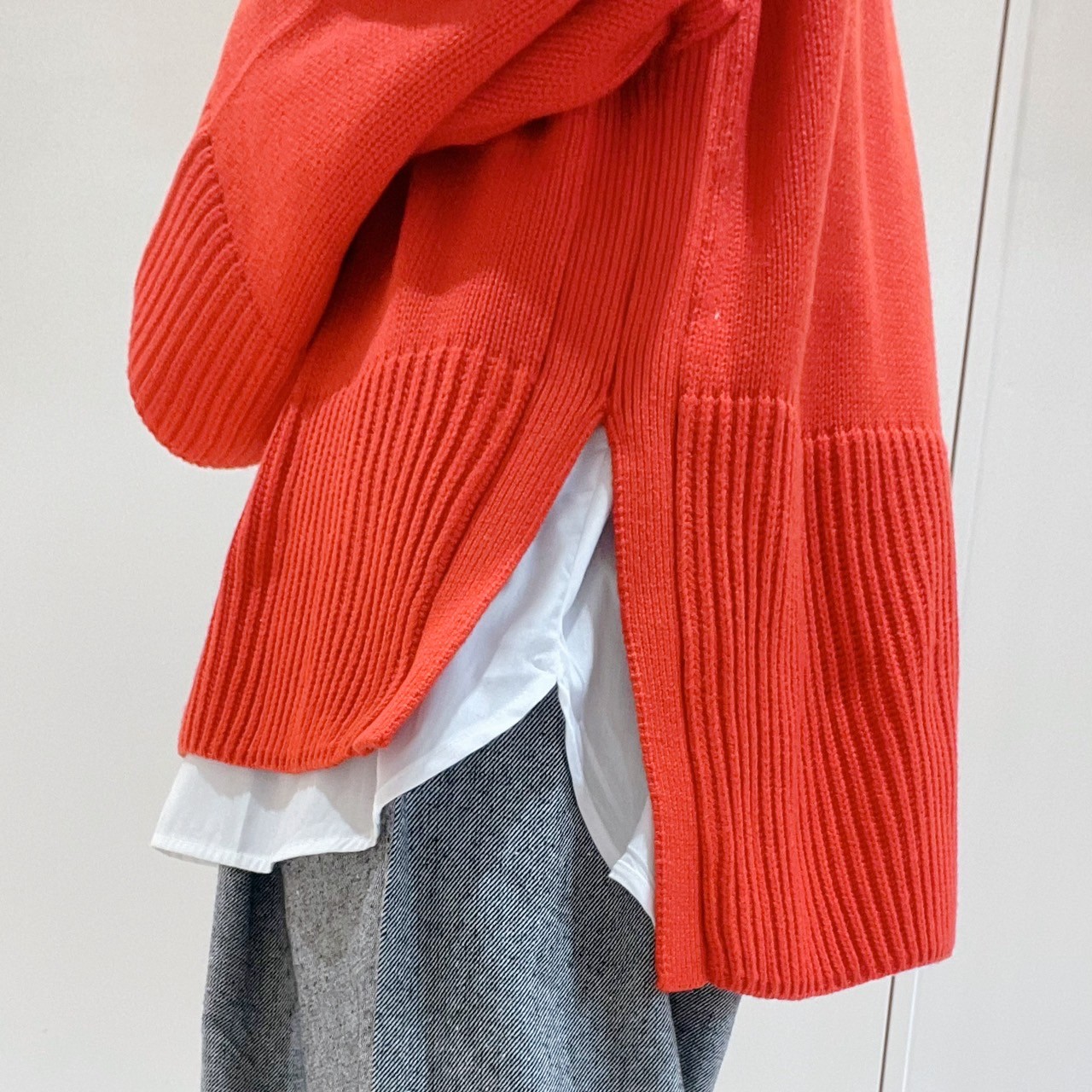 サイドにはスリット入りで、シャツやロンT等とのレイヤードが上品な仕上がりに♡