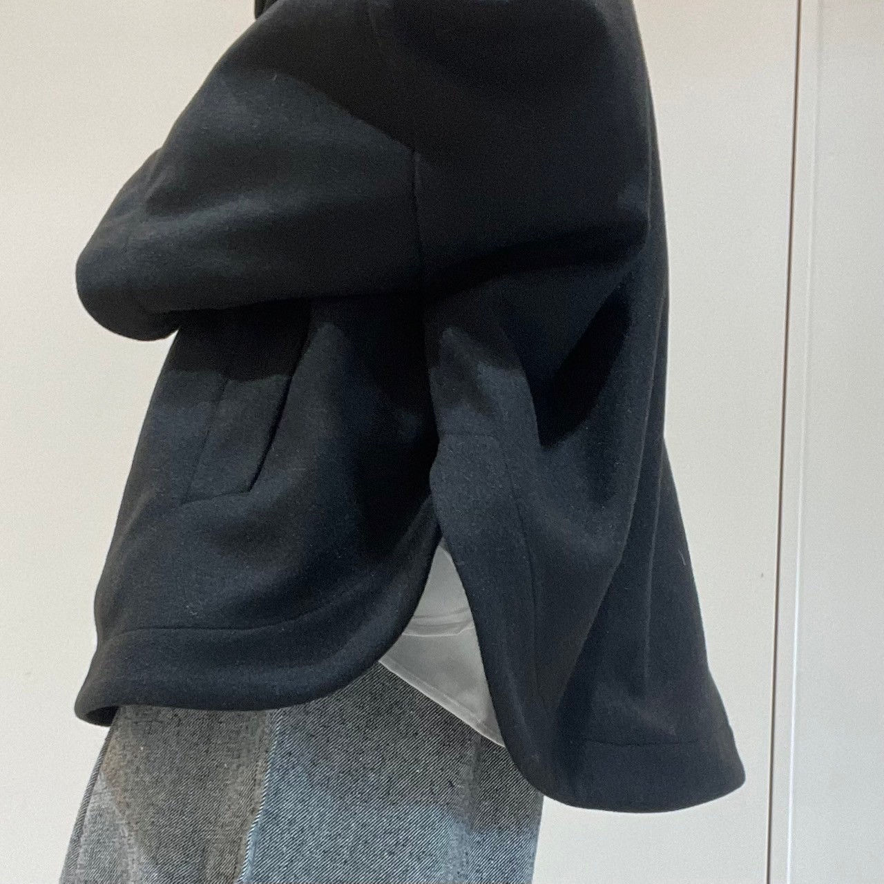 ドロップショルダーで袖が通しやすく、オーバーサイズ気味なのでハンサムな印象に!