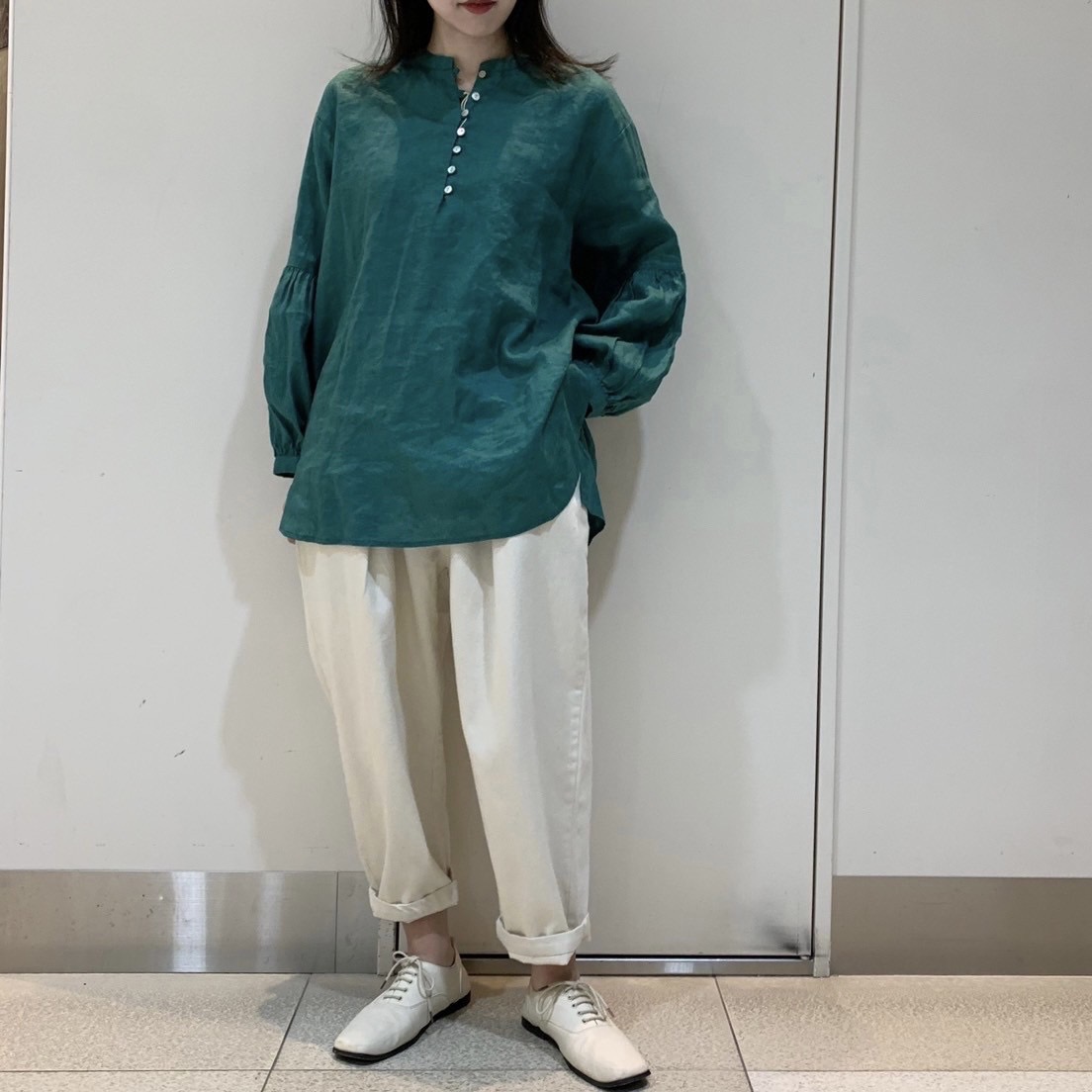 14番手リネンボリューム袖多ボタンブラウス