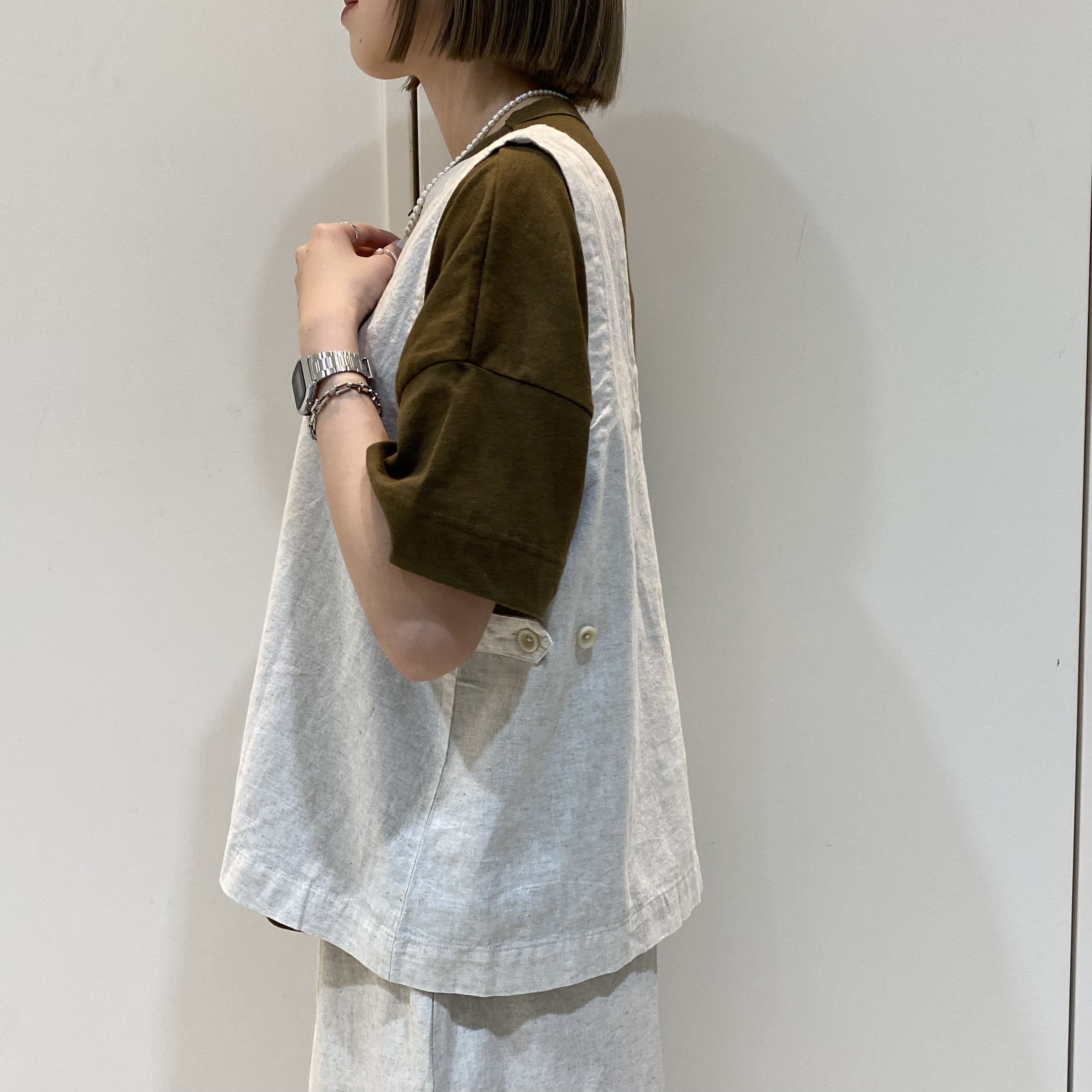 ナチュラルな風合いと優しい肌触りのコットンリネン素材で仕立てたベストです。