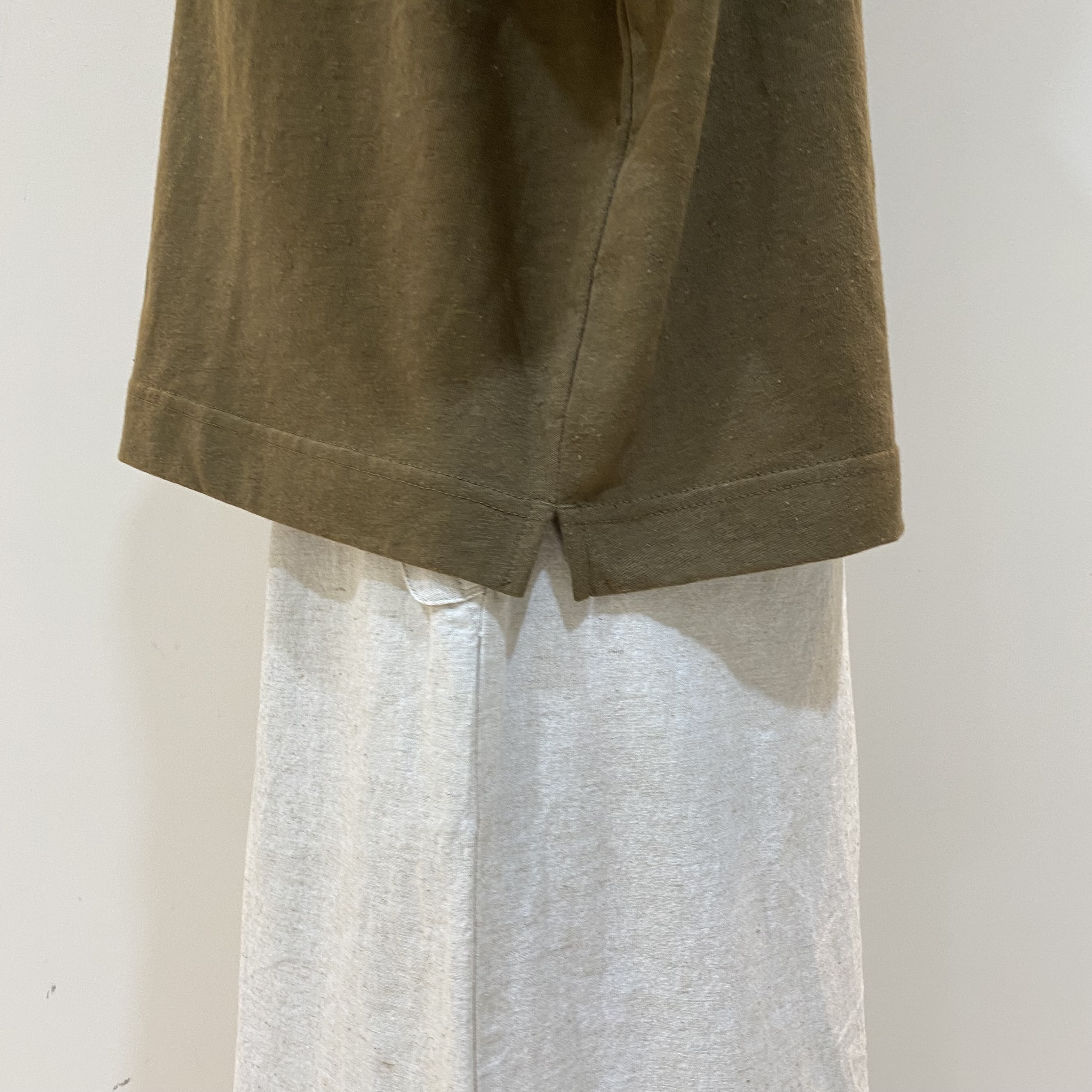 麻のナチュラルな雰囲気を残した綿麻天竺ポケ付き5分袖ビッグTシャツ。