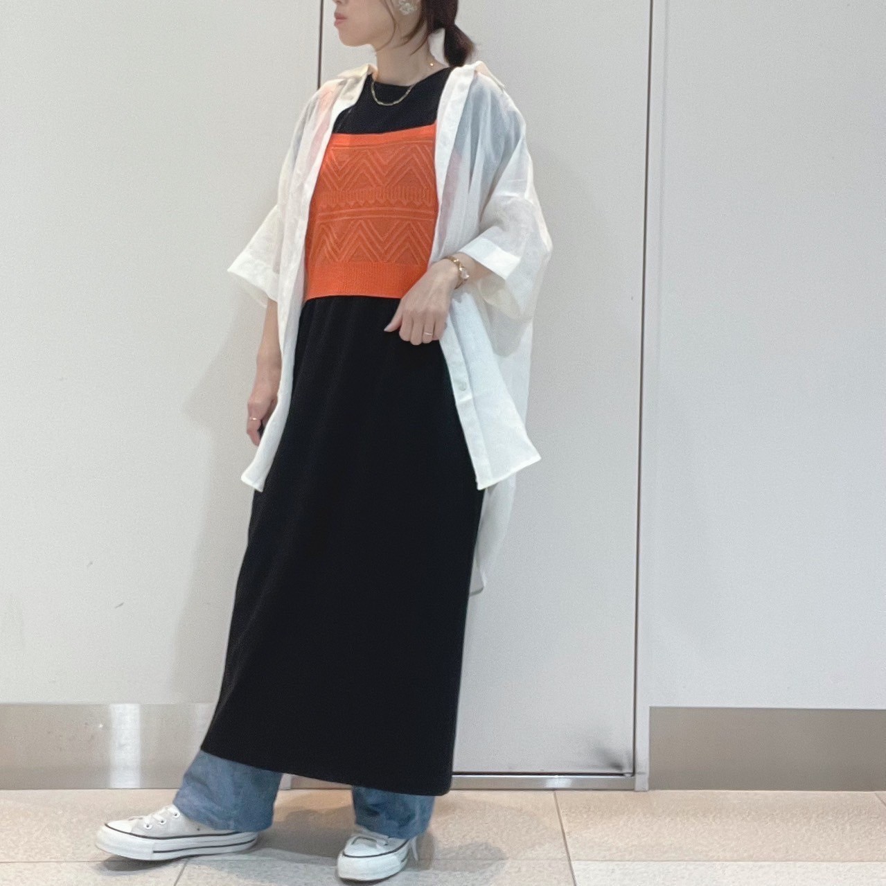 肩先から脇下にタックを入れて表情をつけたワンピース