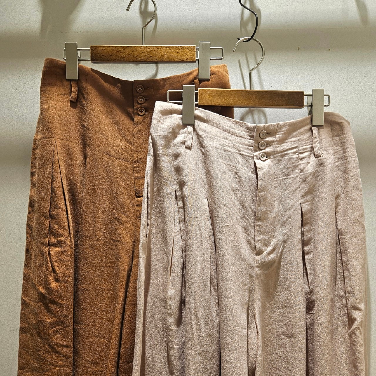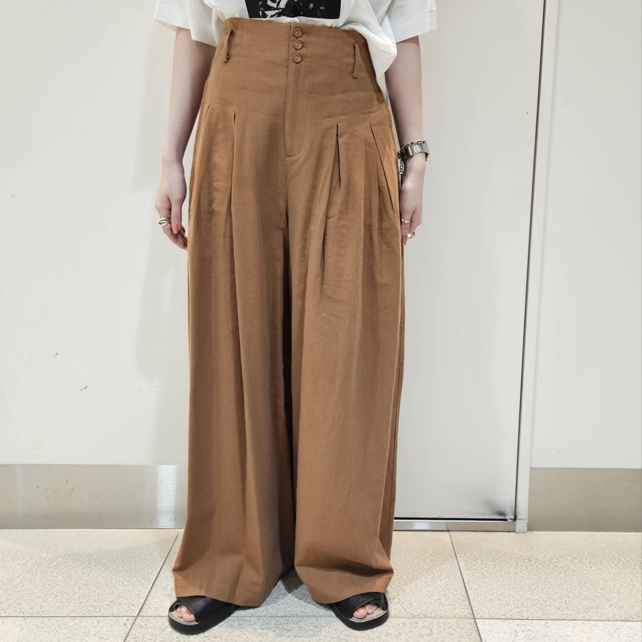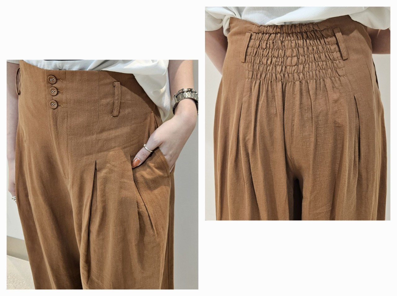 綿とレーヨンのサラリとしたハイウエストパンツ。