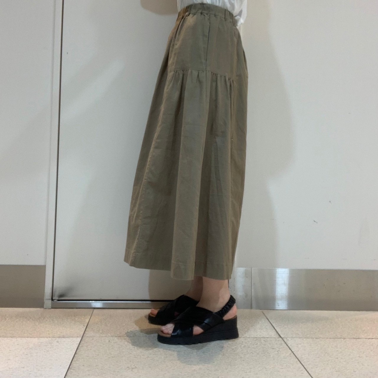 綿麻の素材感が相まって甘すぎない雰囲気で履いていただけます。