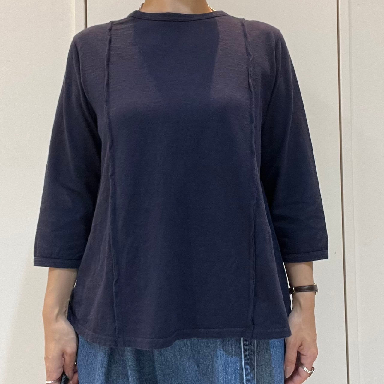 袖幅はゆったりとしていて、中に長袖を着てもゆったりとした着心地です。