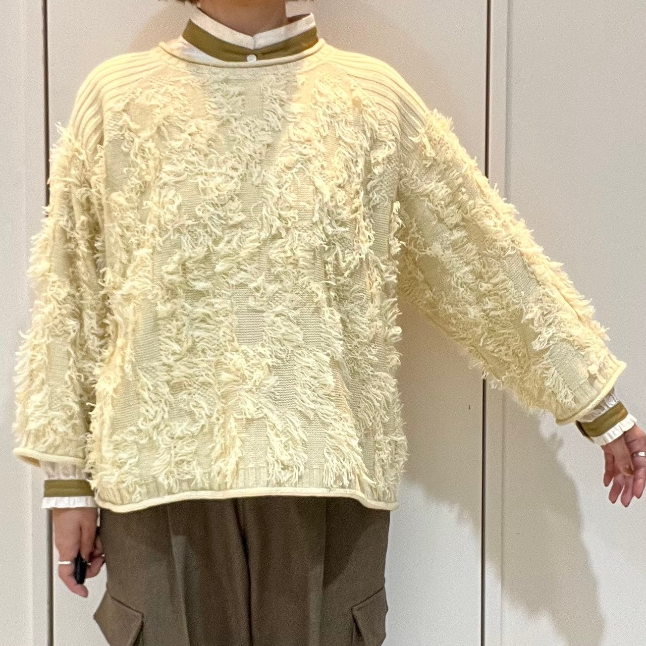 表面のもじゃもじゃ感がかわいいシンプルニットです!