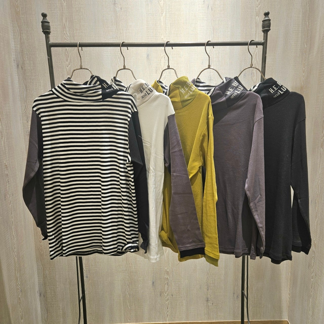 首周りにロゴやニット素材の切り替えが入ったゆったりめのタート。