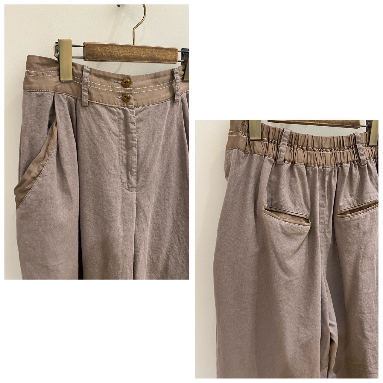 前から見るとワイドパンツ、後ろから見るとAラインスカートになっているデザイン。後ろゴム仕様になっているのでラクチンなのにオシャレな一着!
