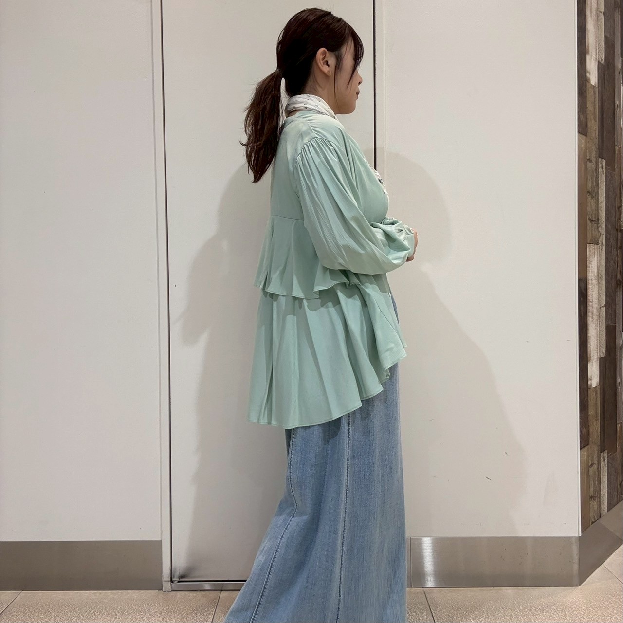 ミントグリーンのブラウスでエレガントカジュアル🌿