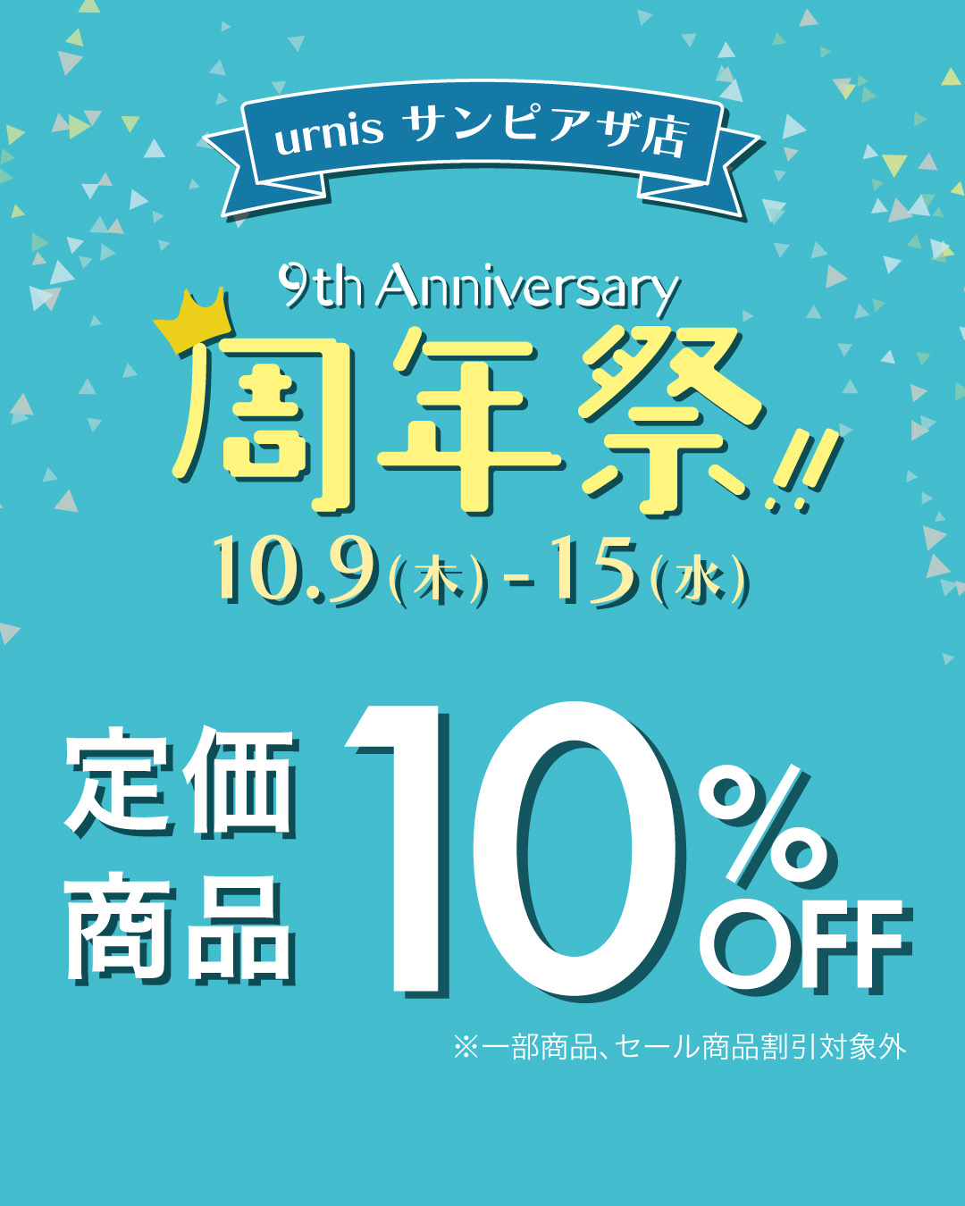 10/9(木)〜10/15(水)の期間中、定価アイテムが10%OFFとなります。