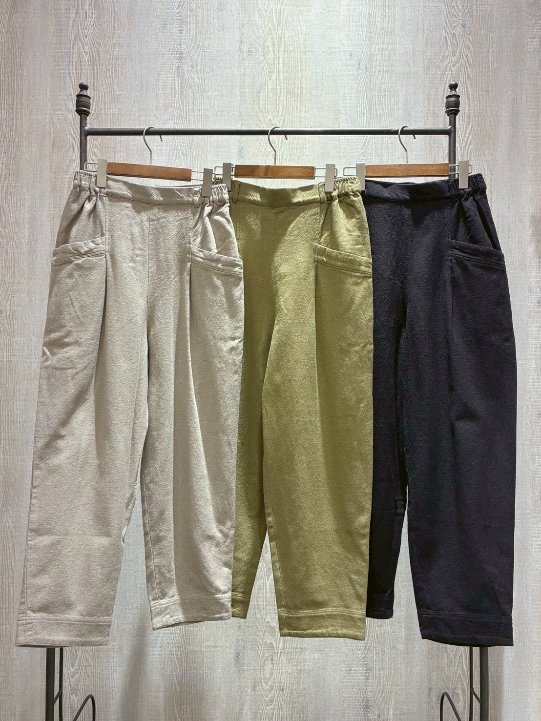 ▶︎綿麻綾織引き揃えシャンブレーテーパードPT