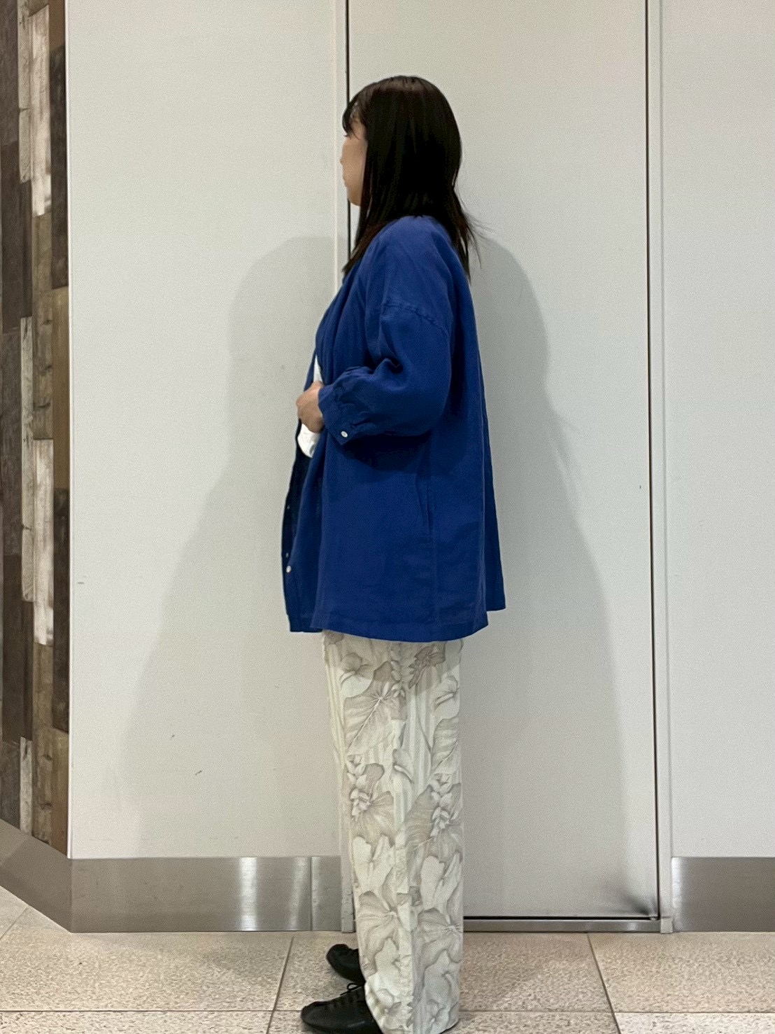 上に羽織っているシャツは【co;ill nine】から新作で入荷しましたリネンシャツです。