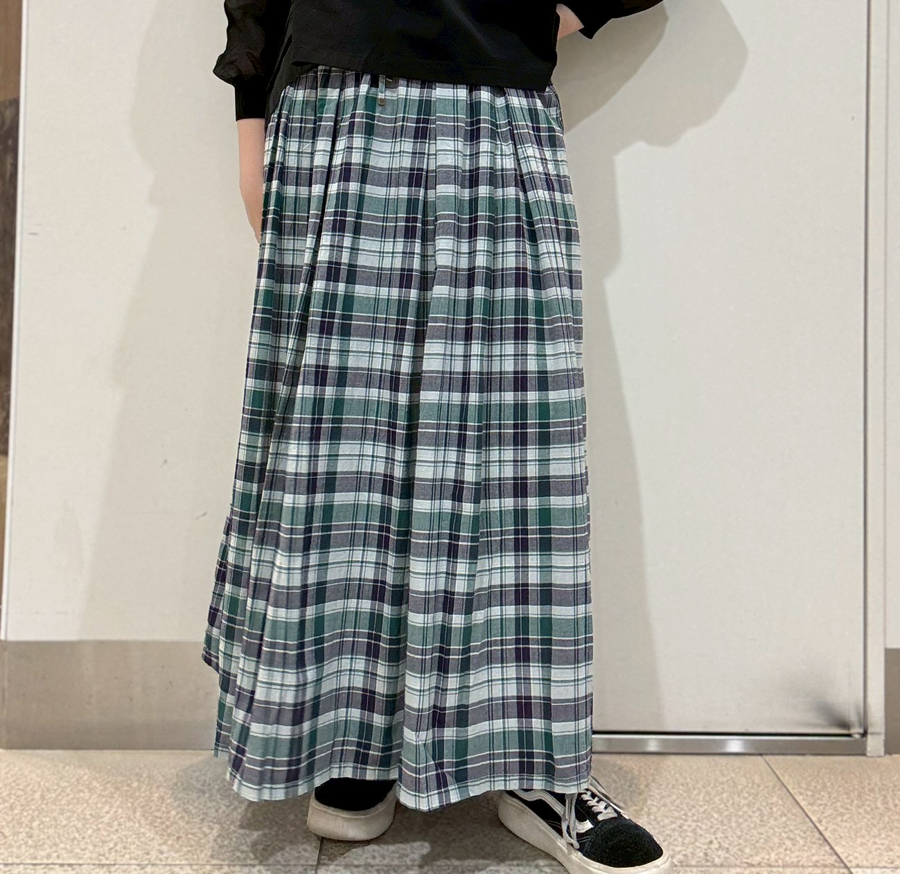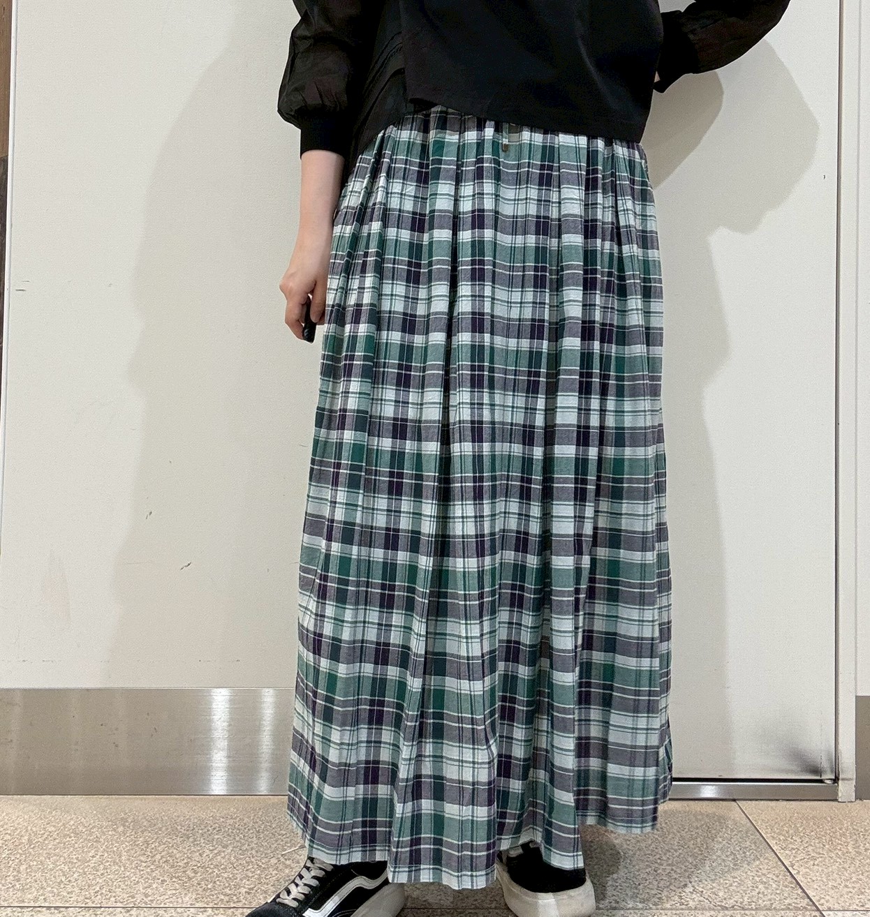 落ち着いたトーンのチェック柄で、上品に取り入れられる大人のスカート✨️