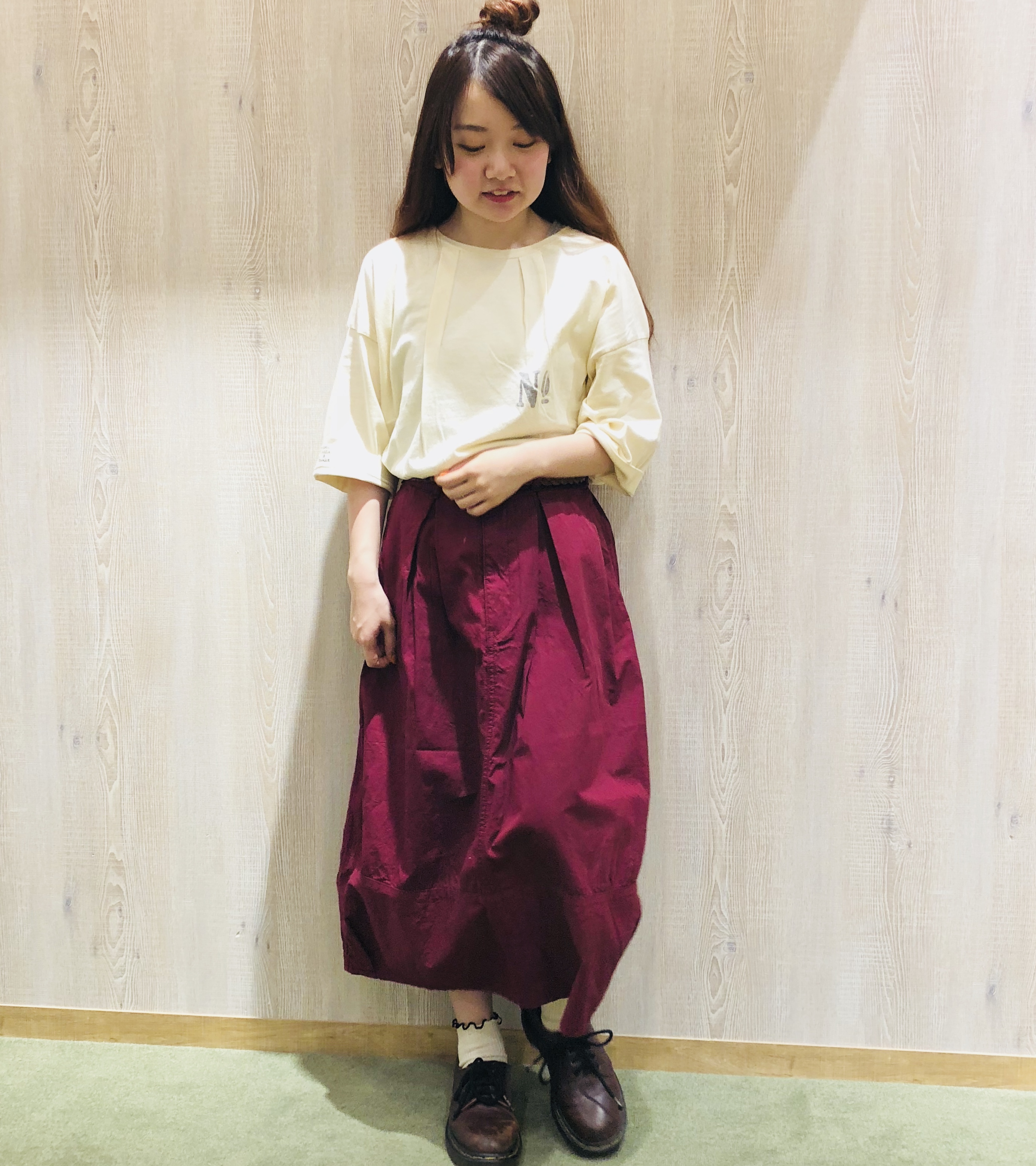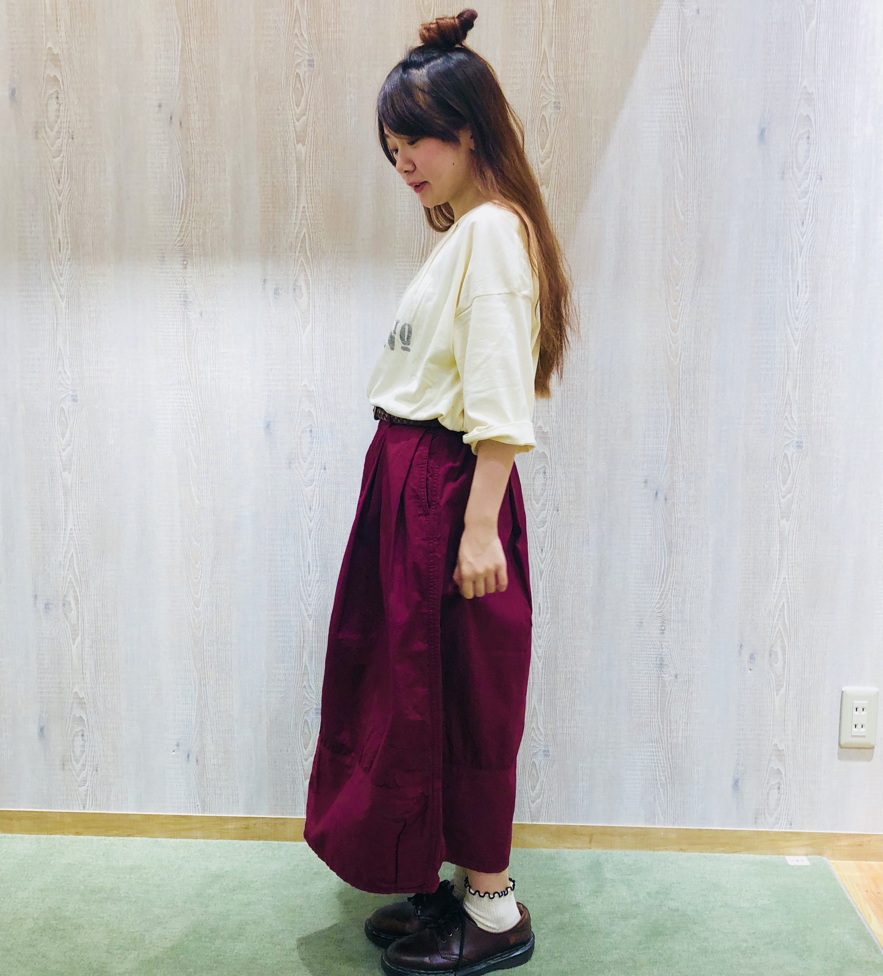 Tシャツと合わせてカジュアルに着こなしても女性らしい印象になります♡