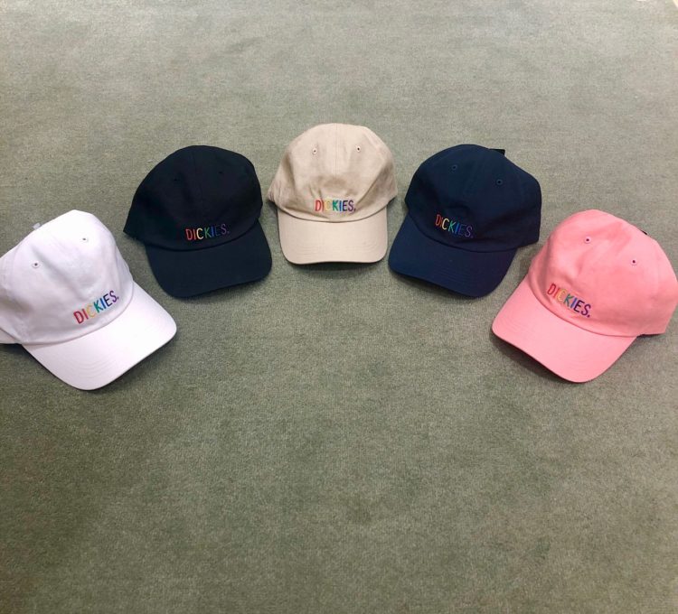合わせた帽子は【DICKIES】のカラフルなロゴが入った帽子です!