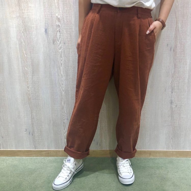 太もも周りはふっくらと、裾にかけてすっきりとしたシルエットなので安心!