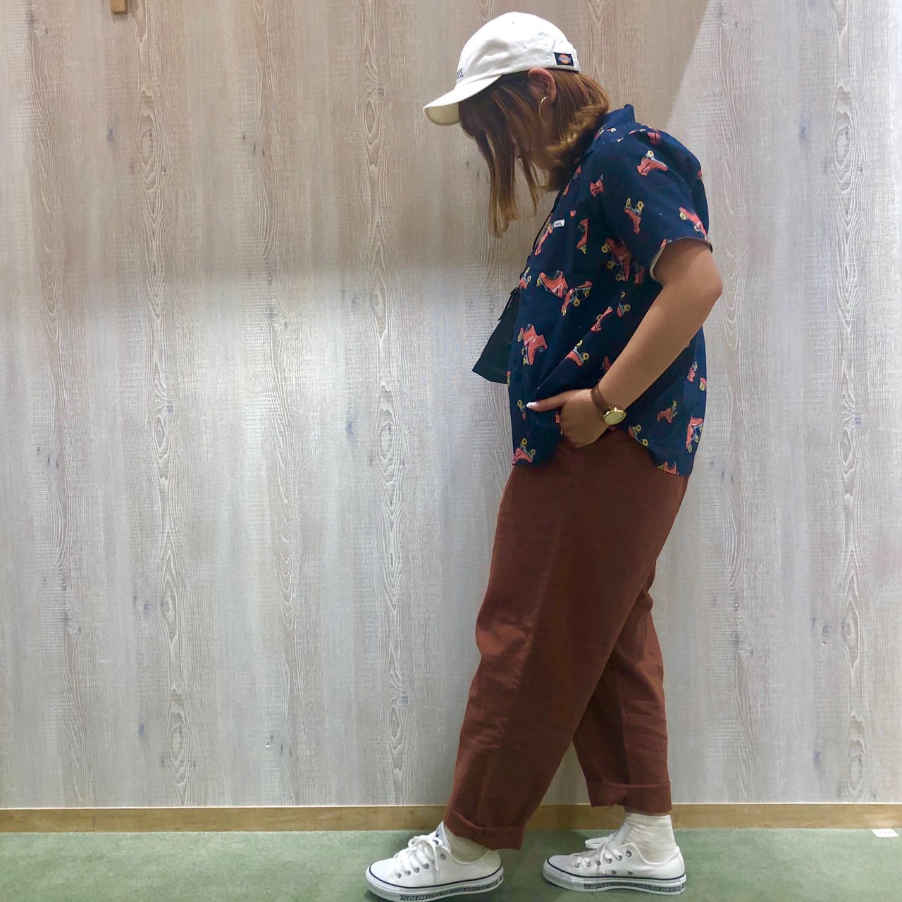 今回は、迫川が一目惚れした可愛い柄シャツとサンピアザ店限定のパンツを使って夏を意識したコーデを紹介します♡