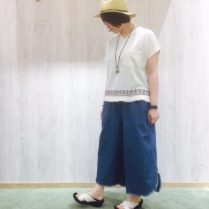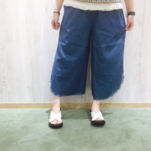 デニムガウチョですが、生地が薄く肌にまとわりつかない穿き心地♪