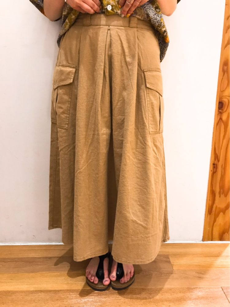 女性らしいAラインのシルエットには、サイドのカーゴポケットでミリタリーのスパイスをプラス。