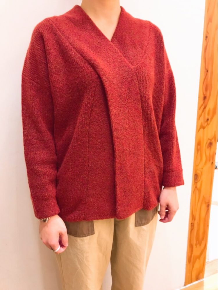 肌触りがよく軽やかな風合いが魅力的な糸を使って編んだニットプルオーバー♪