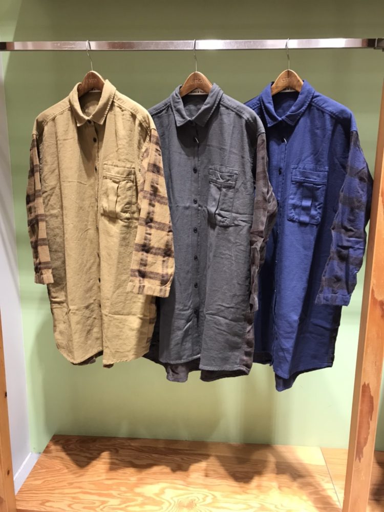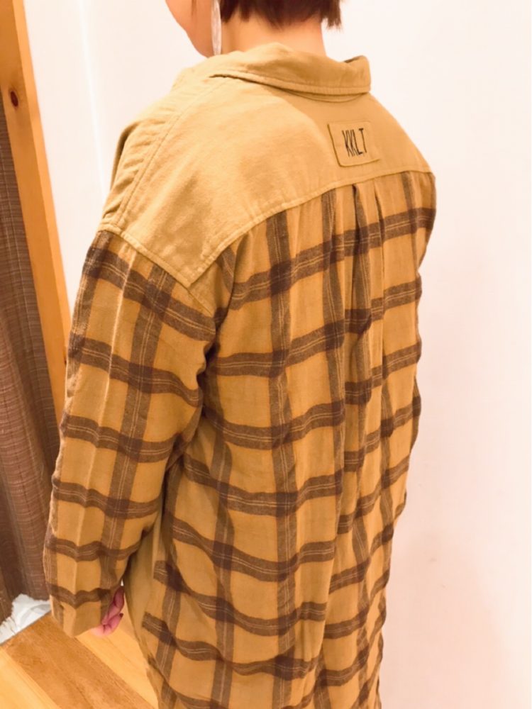 羽織りは、チェックの布帛と無地のカットソーの組み合わせがKAKELAらしいデザイン★