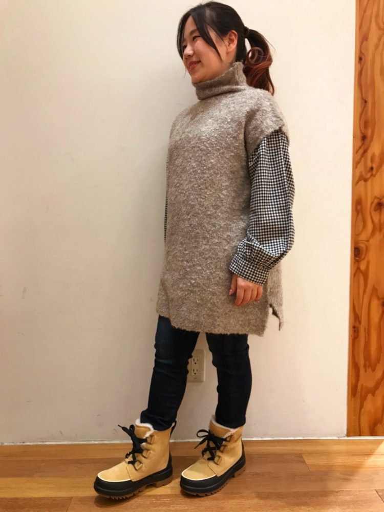 サイドにスリットが入っていて、裾の締め付けがないので、ワンピースやシャツとの重ね着しやすい!