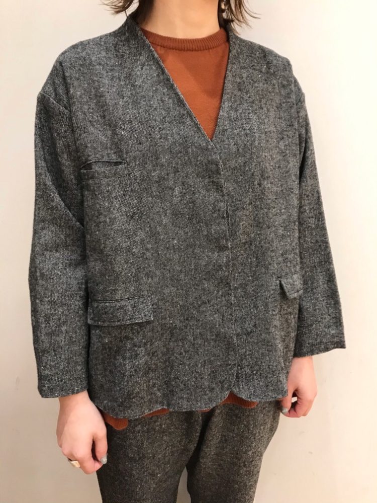 同シリーズのウールツイードVネックジャケットとのセットアップもおすすめ。