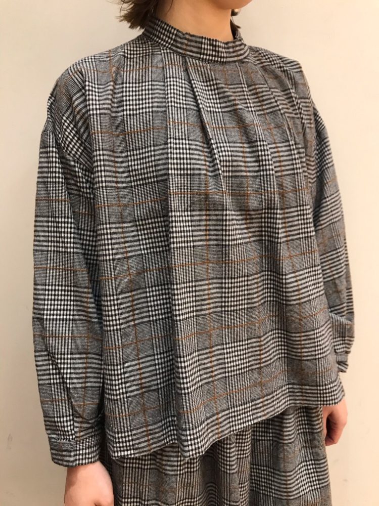 ▷︎コットンモール糸起毛千鳥チェック長袖スタンドカラーブラウス