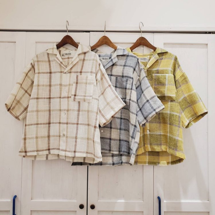 ▷︎ 麻風 先染めチェック 開襟 5分袖シャツ