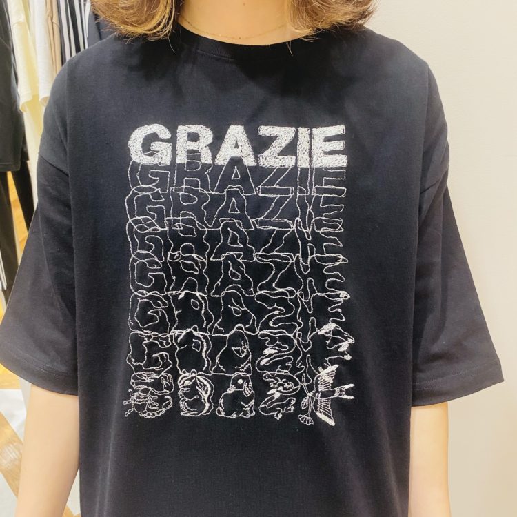 ”GRAZIE”をモチーフにした刺繍Tシャツが登場♪