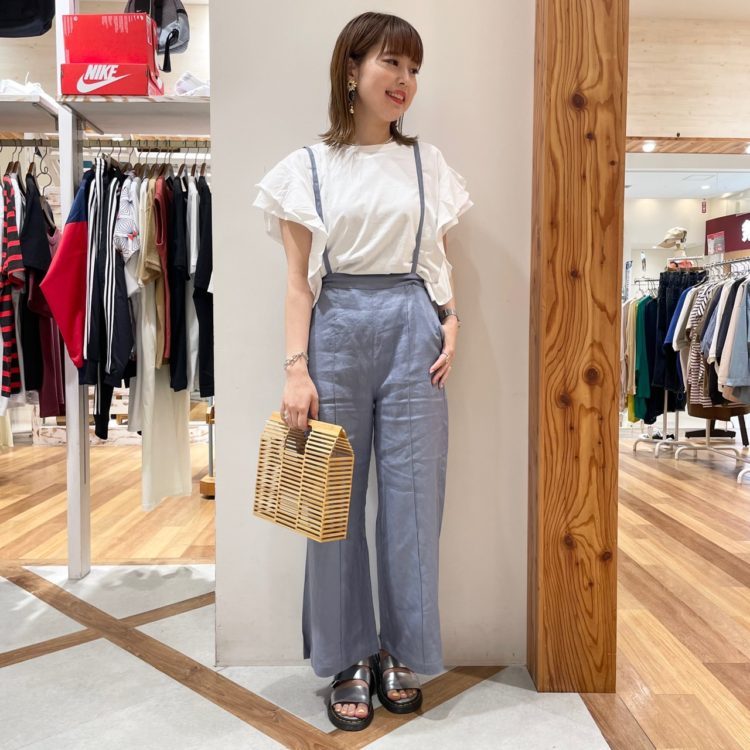 華奢なショルダーストラップがポイントになりきちんと感も出せるので、サロペットって幼く見えないかな・・と抵抗のある方も、チャレンジしやすいです◎