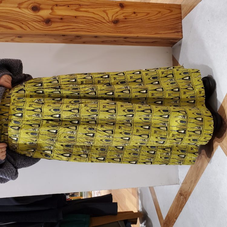 ボトルプリント左脇ボタン開きフロントタックスカート