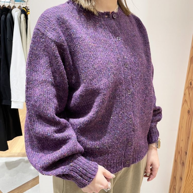 風合い抜群のネップ糸が効果的なアクセントのニット。
