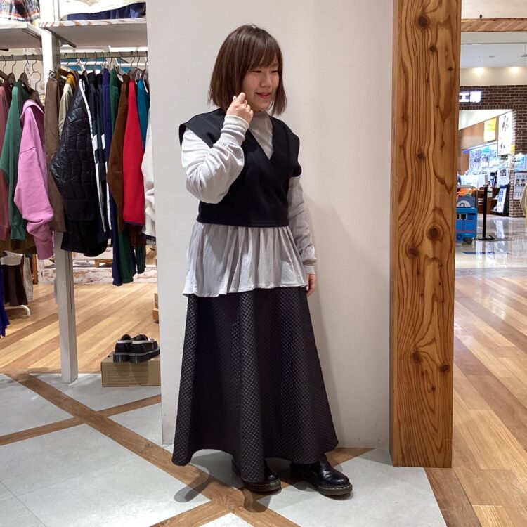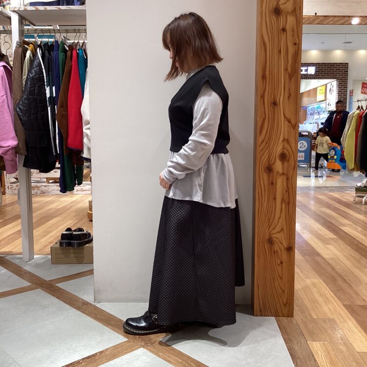 厚手のトップスにも重ねられる、程よくゆったりとしたサイズ感☆